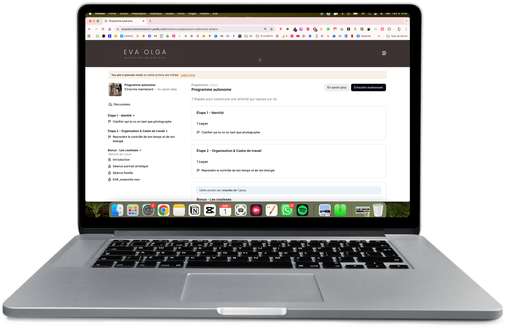 Tu auras accès à une première vidéo d’accueil pour te poser, comprendre le cadre et commencer à te mettre en mouvement ainsi qu'à un premier bonus.